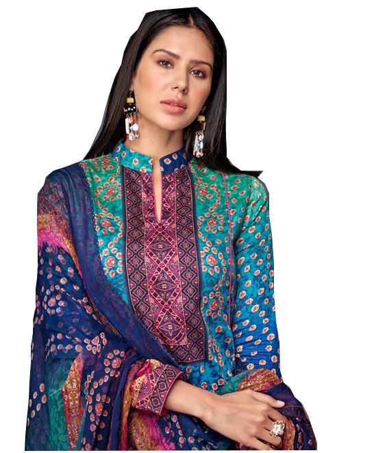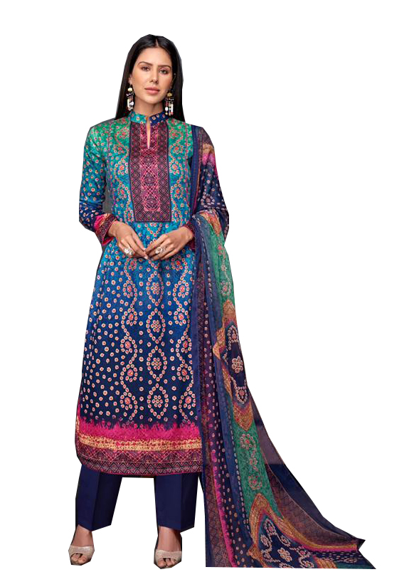 Floral Printed Peocock Desginer Lawn Cotton Dress Material with Dupatta